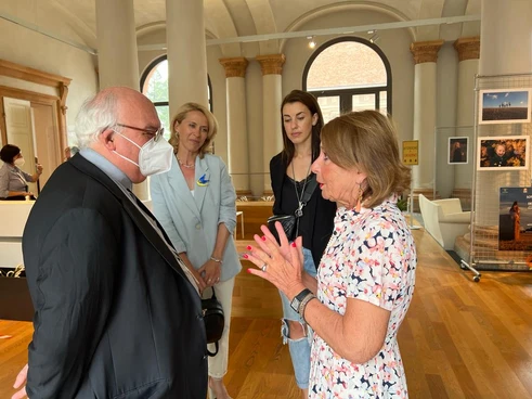 Prima della S. Messa, il Vescovo ha presenziato all’inaugurazione della mostra “Sotto il cielo pacifico dell’Ucraina” della fotografa Olga Voronishcheva (nella foto qui sotto, alla sinistra del Vescovo), organizzata da Fotoclub “Il Torrione” e Proloco di Copparo, con il patrocinio del Comune di Copparo. La mostra è esposta nell’atrio centrale – Centro servizi per il Cittadino della residenza municipale, dove rimarrà sino al 29 giugno.